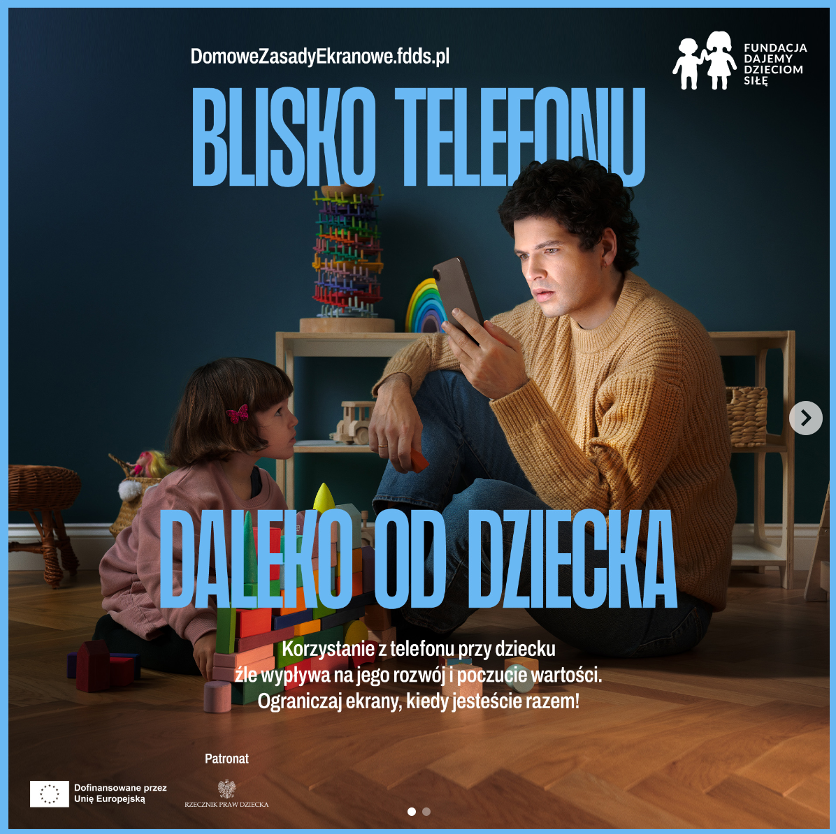 Kampania „Domowe Zasady Ekranowe” prowadzona przez Fundację Dajemy Dzieciom Siłę koncentruje się na promowaniu zdrowych i bezpiecznych nawyków korzystania z urządzeń ekranowych wśród dzieci i ich rodziców. Kampania zwraca uwagę na konieczność ustalania jasnych zasad dotyczących czasu spędzanego przed ekranem oraz treści, które dzieci mogą oglądać. Celem jest wsparcie rodziców w tworzeniu domowych reguł, które pomogą w zrównoważonym i bezpiecznym korzystaniu z technologii przez najmłodszych.