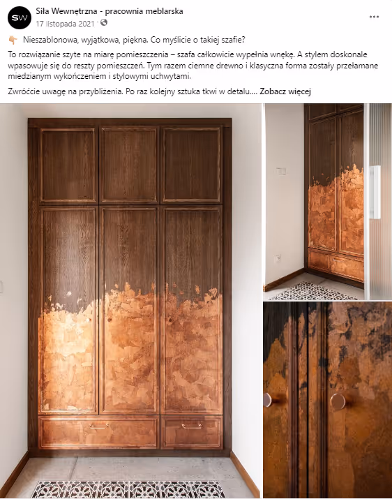 Branża wnętrzarska żyje trendami, więc w strategii nie mogło zabraknąć edukacyjno-inspirujących postów. We wpisach korzystaliśmy z wiedzy i doświadczenia pracowników stolarni, a odbiorcom dawaliśmy unikatową wartość, dzięki której podjęcie decyzji o aranżacji wnętrz stawało się prostsze.